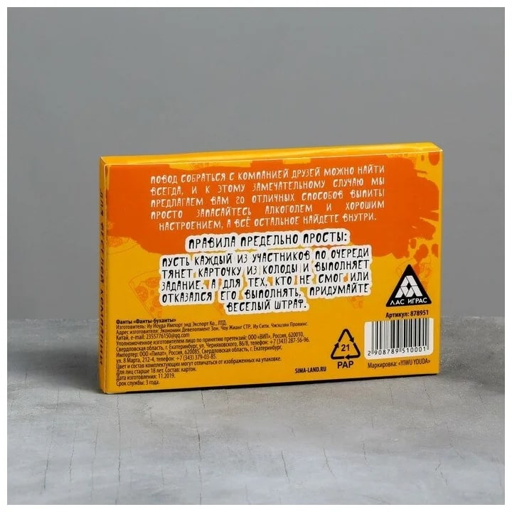 Купить игра для компании "фанты буханты" 20 карт от 100 руб. с доставкой до пункта выдачи в Мещовске. Интернет магазин ДекаМаркет. Оплата при получении.